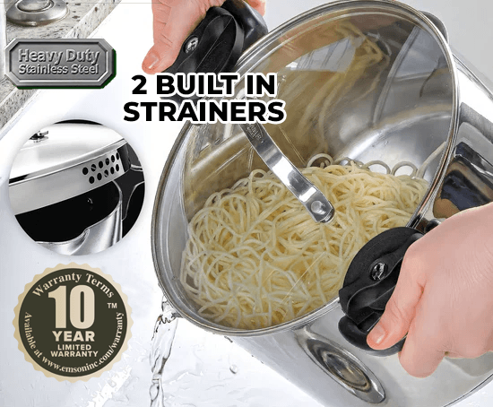 Multipurpose Pasta Pot with Strainer Lid & Twist and Lock Handles